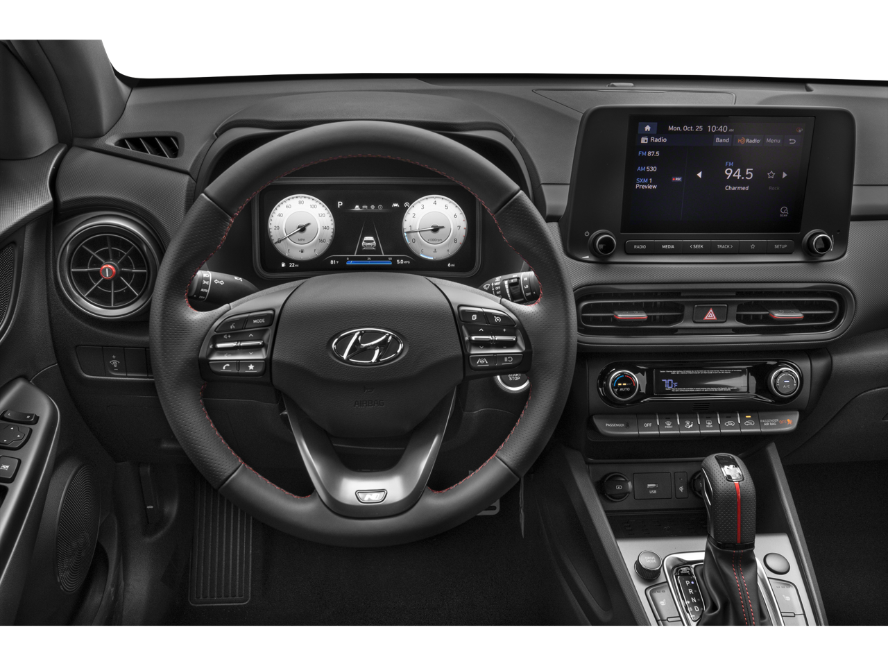 Inside, the Kona N Line pampers you with premium amenities. The heated front seats and leather-wrapped steering wheel and shift knob add a touch of luxury, while the split-folding rear seat and Cargo Tray offer exceptional versatility and practicality.